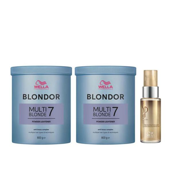 Pachet 2 x Pudra Decoloranta - Wella Professionals Blondor Multi Blonde Powder 800 g + Ulei Reconstructiv 30 ml