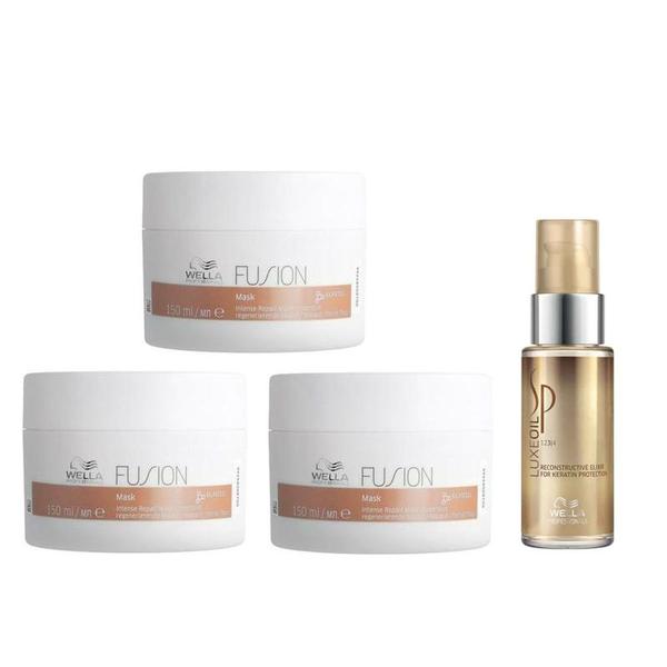 Pachet 3 x Masca de Reparare pentru Par Deteriorat - Wella Professionals Fusion, 150 ml + Ulei Reconstructiv, 30 ml: