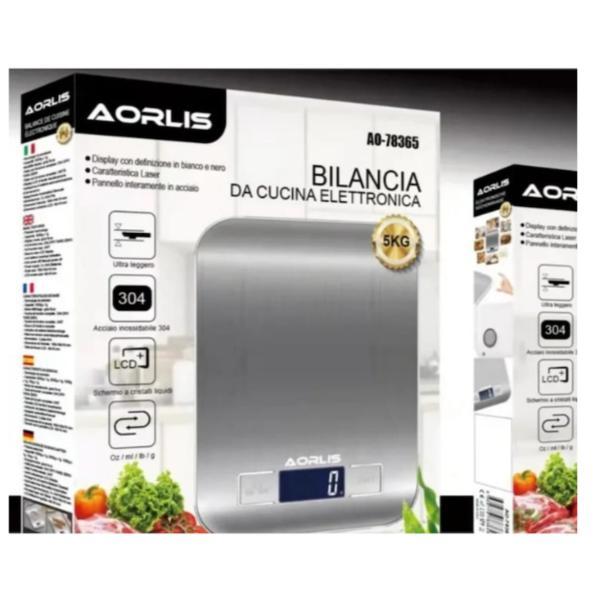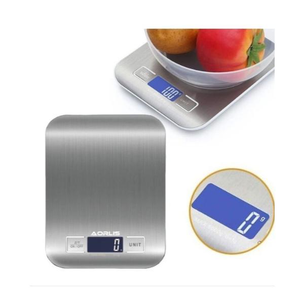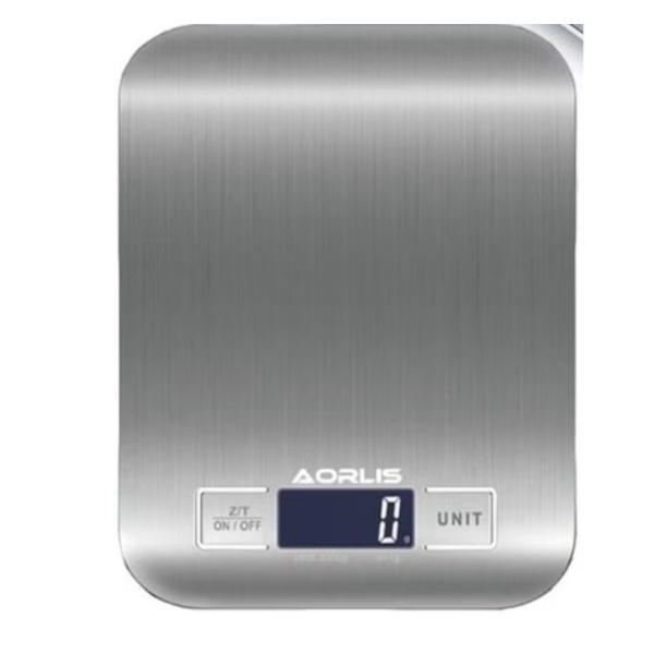 Cantar electronic de bucatarie AORLIS din otel inoxidabil 5 kg argintiu rezistent la apa cu 5 unitati diferite de masura
