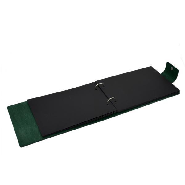 40 de pagini (20 file) din carton negru, premium, gros de 350 g pe care poti lipi fotografiile cu banda dublu adeziva sau lipici si poti scrie cu marker alb;