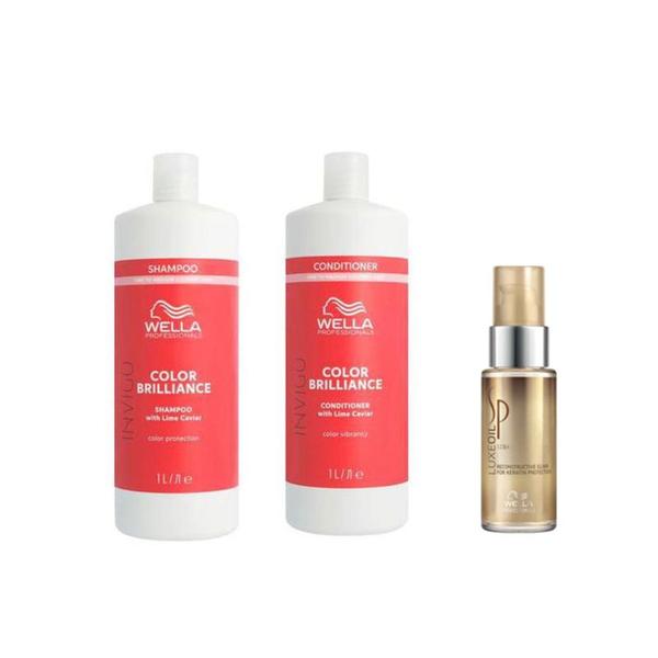 Pachet pentru Par Vopsit, Fin sau Normal - Wella Professionals Invigo Color Brilliance Vibrant Color: Sampon 1000 ml + Balsam 1000 ml + Ulei Reconstructiv 30 ml: