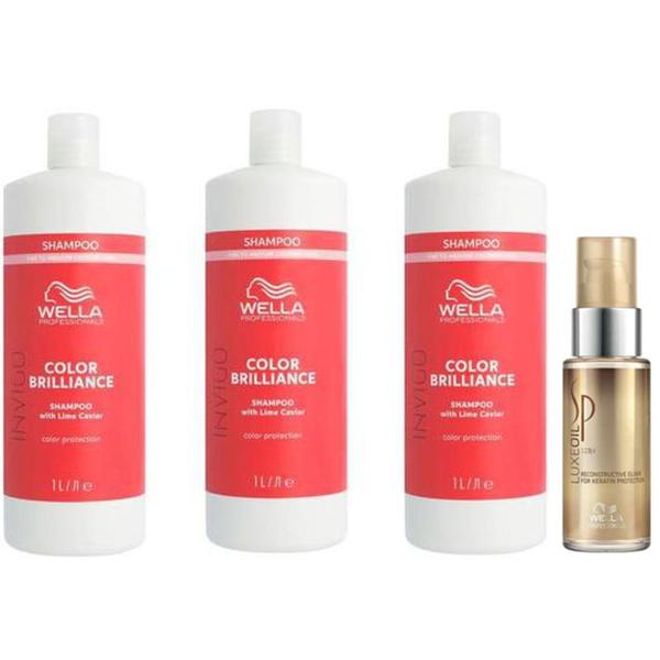 Pachet 3 x Sampon pentru Par Vopsit Fir Subtire/Normal - Wella Professionals Invigo Color Brilliance Fine/Normal Shampoo, 1000 ml + Ulei Reconstructiv, 30 ml: