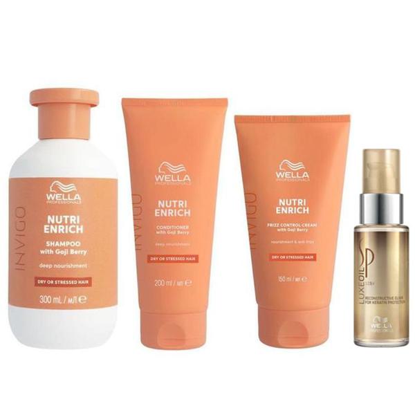 Pachet Intens Nutritiv pentru Par Uscat si Deteriorat - Wella Professionals Invigo Nutri-Enrich: Sampon 300 ml, Balsam 200 ml, Crema 150 m + Ulei Reconstructiv 30 ml: