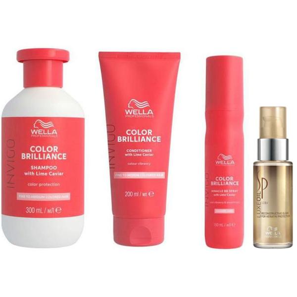 Pachet pentru Par Vopsit cu Fir Subtire/Normal - Wella Professionals Invigo Color Brilliance Fine/Normal: Sampon 300 ml, Balsam 200 ml, Spray Miracle BB 150 ml + Ulei Reconstructiv 30 ml: