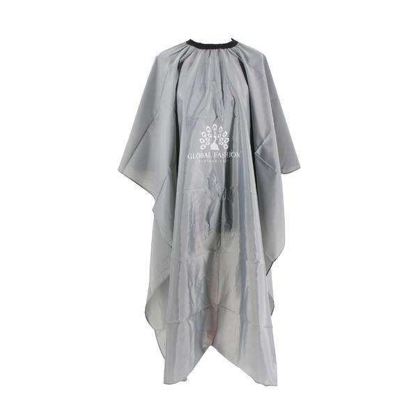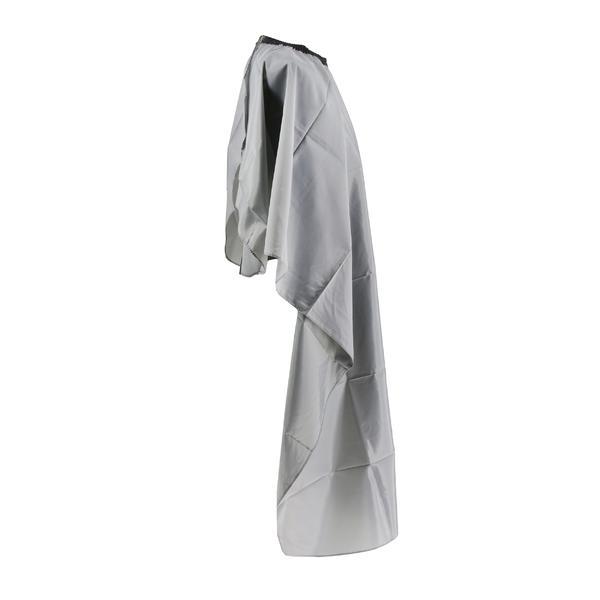 Această pelerină de tuns părul, de culoare gri, este ideală pentru a proteja clienții de părul tuns și de produsele de styling.