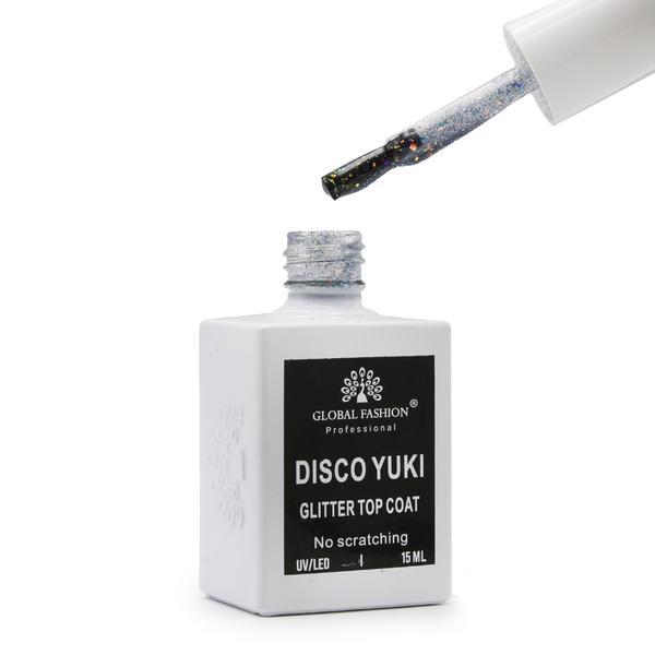 Top Coat fără strat lipicios Disco Yuki – 15 ml de la Global Fashion este mai mult decât un produs de finisare — este o adevărată magie lichidă pentru unghii.