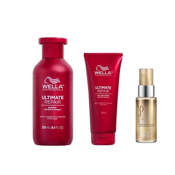 Pachet Reparator pentru Par Deteriorat - Wella Professionals Ultimate Repair: Sampon Ultimate Repair Shampoo, 250 ml + Balsam Ultimate Repair Deep Conditioner, 200 ml + Ulei Reconstructiv 30 ml: