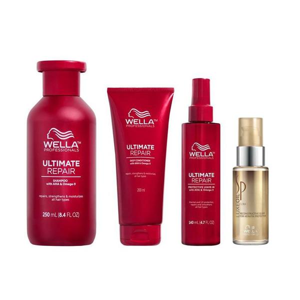 Pachet Reparator pentru Par Deteriorat - Wella Professionals Ultimate Repair: Sampon 250 ml + Balsam 200 ml + Crema Leave-In 140 ml + Ulei Reconstructiv 30 ml :
