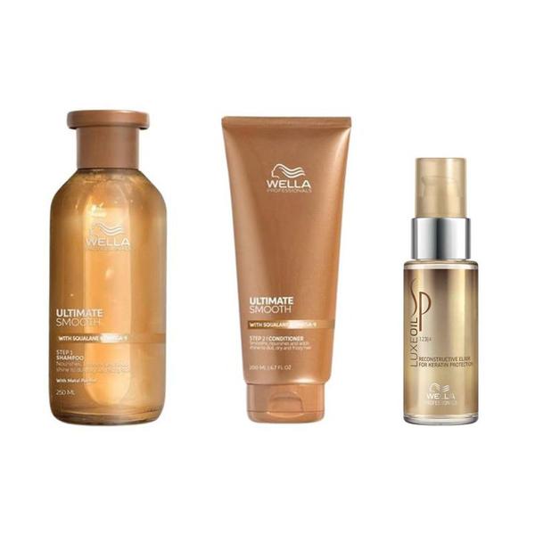 Wella Professionals Ultimate Smooth este un sistem profesional de ingrijire a parului, conceput pentru a hrani si netezi parul uscat, electrizat si cu aspect tern. Tehnologia patentata ce contine Squalane si Omega 9 hraneste intens parul din interior si reface bariera de protectie la exterior, pentru un par neted, hidratat, stralucitor si cu aspect matasos.