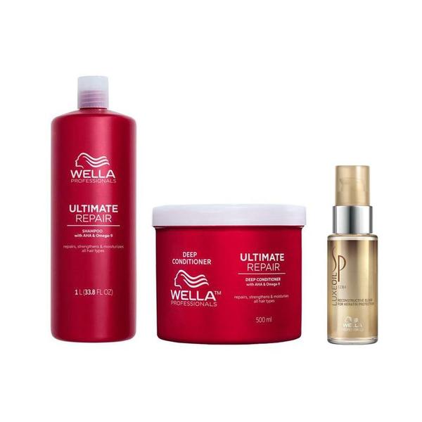 Pachet Reparator pentru Par Deteriorat - Wella Professionals Ultimate Repair: Sampon 1000 ml + Balsam 500 ml + Ulei Reconstructiv 30 ml: