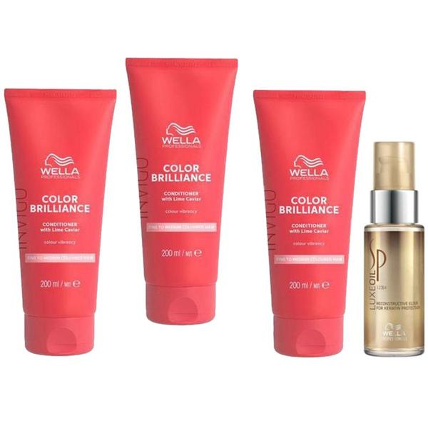 Pachet 3 x Balsam pentru Par Vopsit cu Fir Subtire/Normal - Wella Professionals Invigo Color Brilliance Fine/Normal, 200 ml + Ulei Reconstructiv, 30 ml: