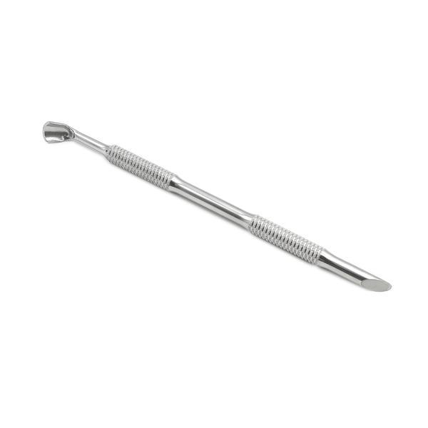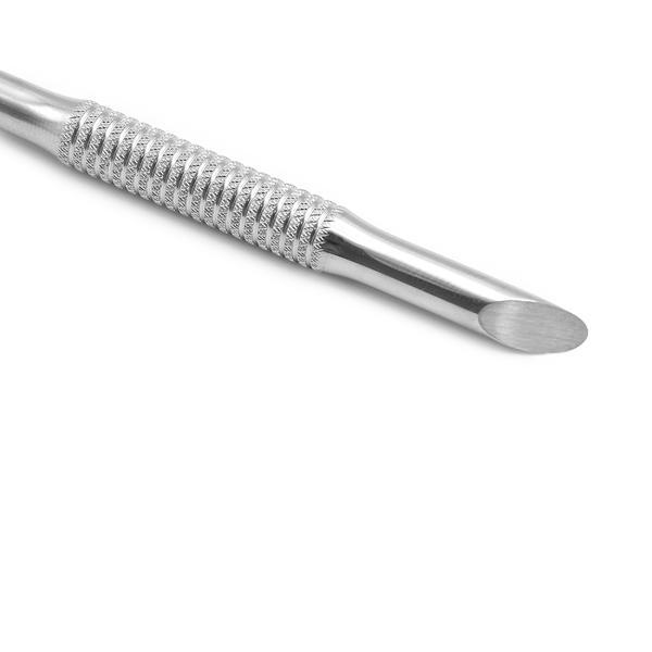 Un instrument de calitate pentru îngrijirea cuticulelor, cu două capete pentru unghiuri diferite, oferind versatilitate în îndepărtarea și curățarea cuticulelor.