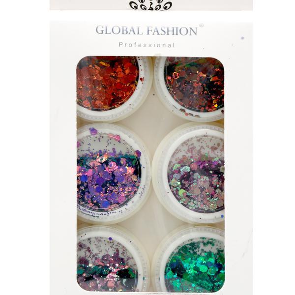 Acest set include 6 tipuri de paiete multicolore, perfecte pentru a adăuga un efect de strălucire unghiilor tale.