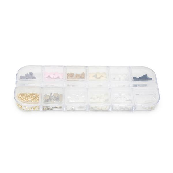 ✅ Diversitate de forme și culori – Setul conține o varietate de forme (perle, pietre, funde) și culori variate care permit crearea unui design personalizat, pe gustul tău.