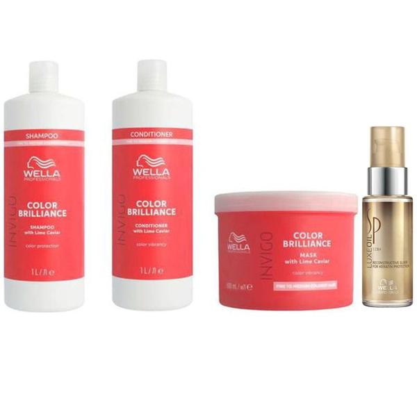 Pachet pentru Par Vopsit Fir Subtire/Normal - Wella Professionals Invigo Color Brilliance Fine/Normal: Sampon 1000 ml, Balsam 1000 ml, Masca 500 ml + Ulei Reconstructiv 30 ml: