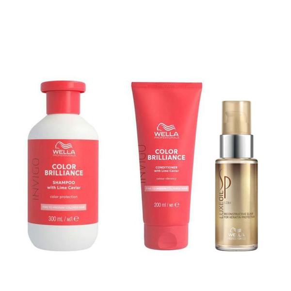 Pachet pentru Par Vopsit cu Fir Subtire/Normal - Wella Professionals Invigo Color Brilliance Fine/Normal: Sampon 300 ml, Balsam 200 ml + Ulei Reconstructiv 30 ml: