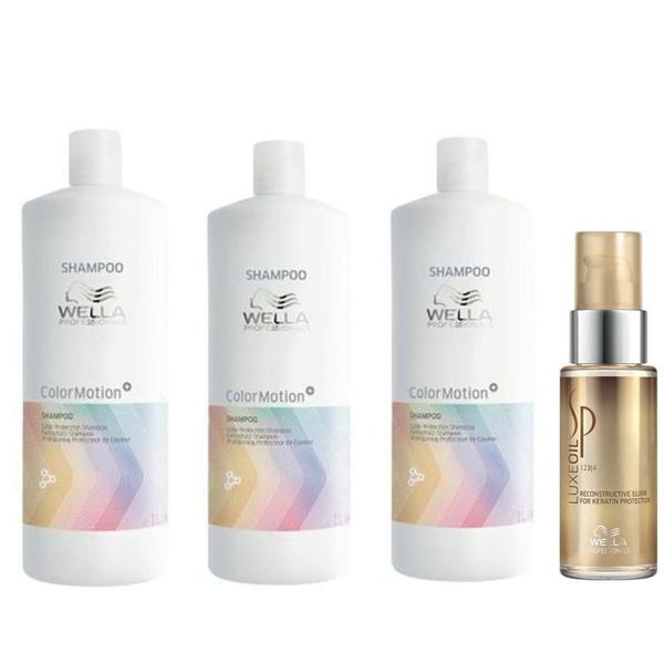 Pachet 3 x Sampon pentru Par Vopsit de Mentinere a Culorii si Fortifiere - Wella Professionals Color Motion+, 1000 ml + Ulei Reconstructiv 30 ml: