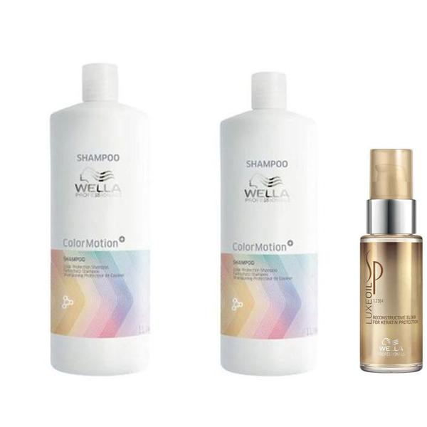 Pachet 2 x Sampon pentru Par Vopsit de Mentinere a Culorii si Fortifiere - Wella Professionals Color Motion+, 1000 ml + Ulei Reconstructiv 30 ml: