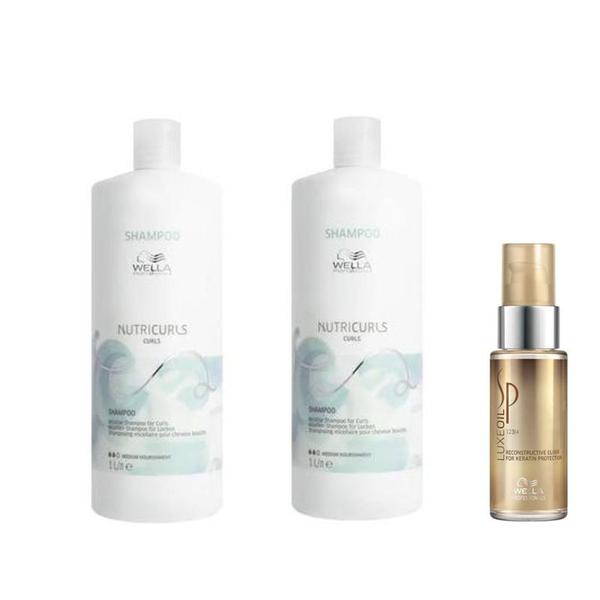 Pachet 2 x Sampon pentru Parul Cret - Wella Professionals Nutricurls Micellar Shampoo for Curls, 1000 ml + Ulei Reconstructiv, 30 ml:
