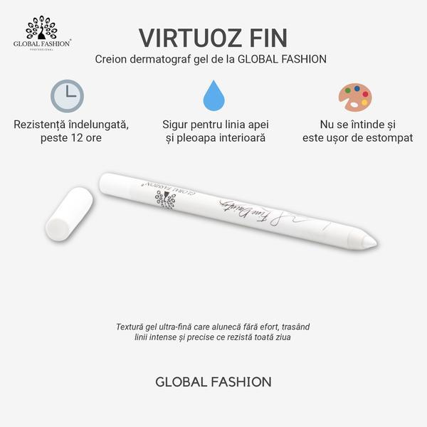 Creionul-gel de ochi Global Fashion #08 Alb este accesoriul ideal pentru o privire mai luminoasă, mai expresivă și perfect definită, indiferent de stilul tău de machiaj.