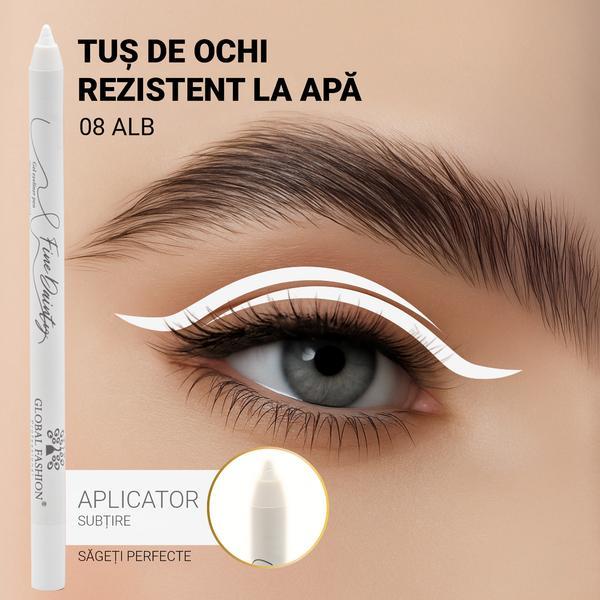 ✨ Creion-gel de ochi Global Fashion – #08 Alb – Luminozitate, precizie și efect de ochi mari ✨