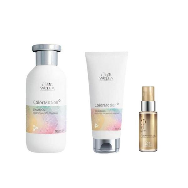 Pachet pentru Par Vopsit de Mentinere a Culorii si Fortifiere - Wella Professionals Color Motion+: Sampon 250 ml, Balsam 200 ml + Ulei Reconstructiv 30 ml: