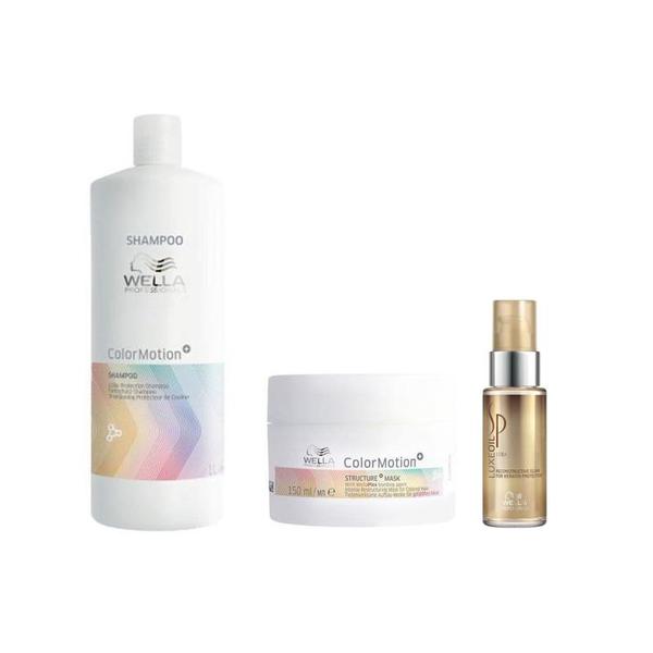 Pachet pentru Par Vopsit de Mentinere a Culorii si Fortifiere - Wella Professionals Color Motion+: Sampon 1000 ml, Masca 150 ml + Ulei Reconstructiv 30 ml: