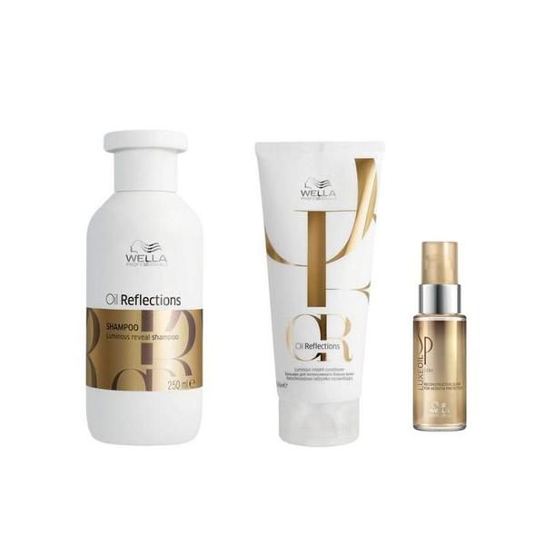 Pachet pentru Par Neted si Stralucitor - Wella Professionals Oil Reflections Luminous: Sampon 250 ml, Balsam 200 ml + Ulei Reconstructiv 30 ml: