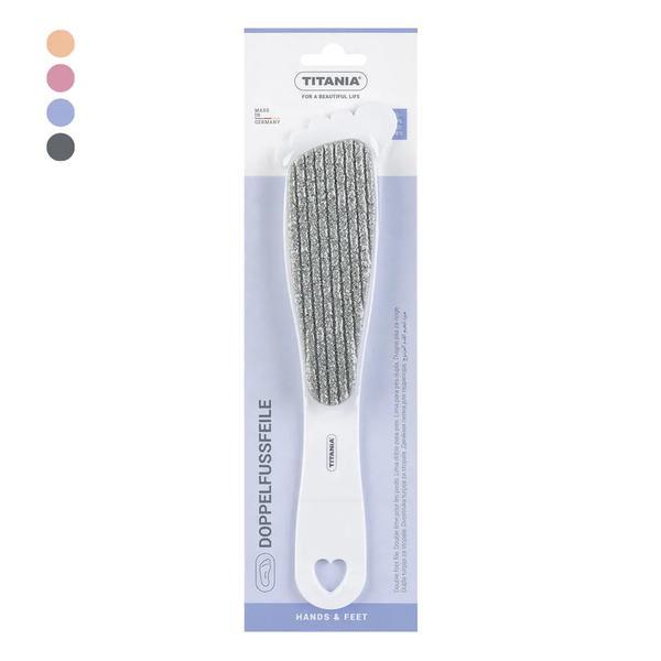 Pila dublă Titania pentru picioare, cu suprafața sa abrazivă și piatră ponce, oferă o îngrijire prietenoasă a pielii prin îndepărtarea blândă și completă a calusurilor și a corneei.