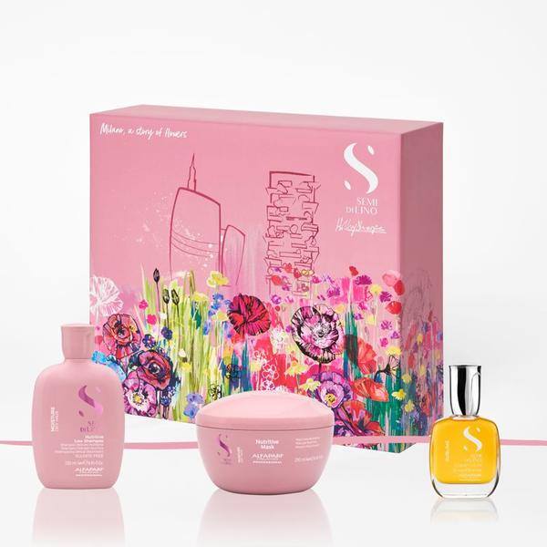 Set Cadou Hidratare pentru Par Uscat - Alfaparf Milano Semi Di Lino Moisture Holiday Kit For Dry Hair: Sampon 250 ml, Masca 200 ml, Ser de Stralucire 15 ml: descopera noul set in editie limitata cu produse ideale pentru parul uscat, intr-o cutie exclusiva Semi Di Lino Moisture Holiday Kit. Setul contine: