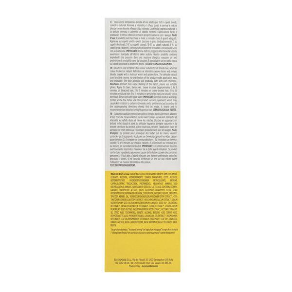 Ingrediente: aqua/water/eau, behenamidopropyl dimethylamine, cetearyl alcohol, hydroxypropyl starch phosphate, cetyl alcohol, distearoylethyl hydroxyethylmonium methosulfate, betaine, caprylic/captriglyceride, propanediol, helianthus annuus seed oil/helianthus annuus (sunflower) seed oil, lactic acid, glycerin, isoamyl laurate, tocopheryl acetate, decyl glucoside, dicaprylyl ether, guar hydroxypropyltrimonmoniium chloride, sodium pca, glyceryl oleate, orbignya speciosa kernel oil, verbascum densiflorum flower/stem extract*, cota tinctoria flower/leaf/stem extract*, helichrysum italicum extract*, linum usitatissisi. mum seed oil/linum usitatissimum (linseed) seed oil*, calendula officinalis extract/calendula officinalis flower extract*, astrocaryum murumuru seed butter, rheum palmatum root extract, glyceryl stearate se, citric acid, tocopherol, pherolzyl alcohol, benzoic acid, sorbic acid, dehydroacetic acid, phenoxyethanol, lavandula oil/extract*, rosmarinus officinalis leaf oil/rosmarinus officinalis (rosemary) leaf oil*, linalool, linalyl acetate, beta-caryophyllene, basic brown 17, basic yellow 57, basic red 76.