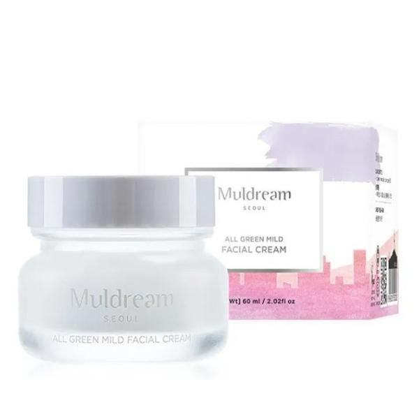 Crema de Fata Vegana, Calmanta si Hidratanta - Muldream All Green Mild Facial Cream, 60 ml: crema de fata vegana ofera hidratare profunda si calmare pielii sensibile sau deshidratate. Formula sa echilibrata, bogata in apa de tarate de orez, ceramide NP si extracte botanice, sustine refacerea barierei naturale a pielii si imbunatateste tonul si textura. Textura usoara si racoritoare se absoarbe rapid, lasand tenul catifelat, neted si vizibil mai sanatos, fara senzatia de pelicula sau grasime. Ideala pentru toate tipurile de ten.