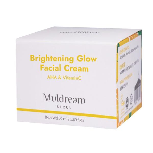 Crema de Fata Vegana, Iluminatoare cu AHA si Vitamina C - Muldream Brightening Glow Facial Cream, 50 ml: crema de fata vegana reface luminozitatea tenului si imbunatateste vizibil aspectul pielii terne sau obosite. Formula sa concentrata combina acizii AHA, care exfoliaza delicat si netezesc textura pielii, cu vitamina C, un antioxidant puternic ce reda stralucirea naturala si uniformizeaza tonul pielii. Ingredientele botanice calmante hidrateaza intens si reduc senzatia de uscaciune, lasand pielea catifelata si neteda. Textura fina si matasoasa se absoarbe rapid, oferind un finish luminos si un aspect sanatos. Ideala pentru toate tipurile de ten, inclusiv pentru cel lipsit de vitalitate sau afectat de pete pigmentare.