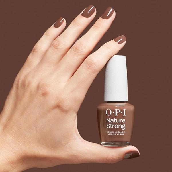 Lac de Unghii Vegan - OPI Nature Strong, Make My Bark on the World, 15 ml: Nature Strong este prima colectie de lac vegan pentru unghii, de origine naturala si de o calitate premium de la OPI. Fiecare nuanta ofera o durabilitate de pana la 7 zile de purtare si o stralucire fabuloasa. Toate nuantele Nature Strong reflecta bogatia naturii, ne readuc in atentie grija pentru natura si pot deveni mai rezistente si mai stralucitoare prin aplicarea top coat-ului – lacul transparent de sigilare cu efect de stralucire si protectie. Colectia cuprinde tonuri diverse de culoare de la neutru si nude, la nuante intense, vibrante si jucause, culori vii si puternice, pana la nuante inchise, cu finisare cremoasa sau cu sidef.