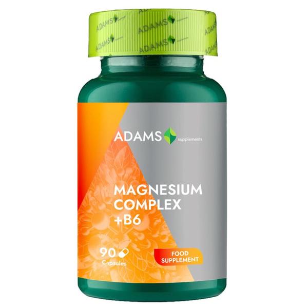 Magnesium Complex + B6 Adams Supplements, 90 capsule: supliment formulat pentru a sustine functionarea optima a organismului prin aport concentrat de magneziu de inalta biodisponibilitate, imbogatit cu vitamina B6. Contribuie la mentinerea echilibrului electrolitic, la reducerea starilor de oboseala si la buna functionare a sistemului nervos. Este recomandat persoanelor active, sportivilor si celor ce sufera de carente de magneziu. Sustine functia musculara si echilibrul psihic.