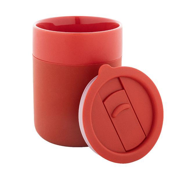 Pahar tumbler ceramic cu manșon din silicon și capac din PP.