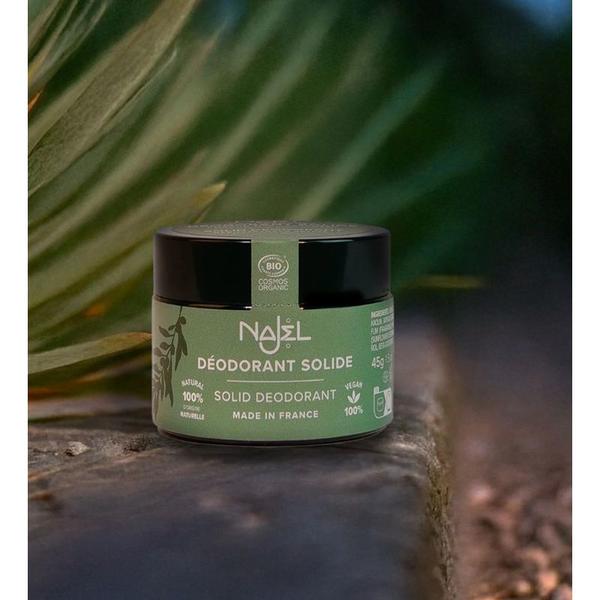 Deodorant Balsam Natural cu Parfum Marin - Najel Deodorant Balm, 45 g: deodorant balsam ce ofera protectie naturala si eficienta pe parcursul intregii zile, neutralizand mirosurile neplacute fara a bloca procesul natural de transpiratie. Contine argila alba si pudra de tapioca pentru o absorbtie eficienta a umezelii, in timp ce uleiul organic de masline si untul bio de shea hranesc, calmeaza si catifeleaza pielea delicata a axilelor. Aroma proaspata cu note marine ofera o senzatie revigoranta si tonica, ideala pentru utilizarea zilnica. Formula naturala, vegana si certificata organic este potrivita pentru toate tipurile de piele, inclusiv pentru pielea sensibila sau reactiva.