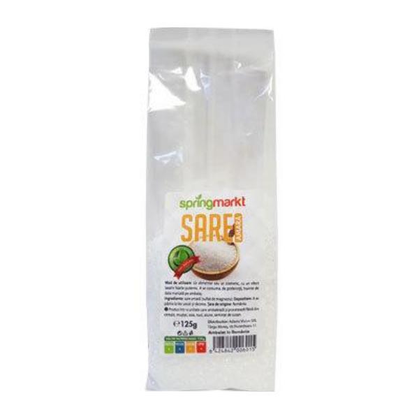 SHORT LIFE - Sare Amara Springmarkt, 125 g: sarea amara contine sulfat de magneziu si minerale, datorita carora are propietatea de a relaxa musculatura, de a elimina toxinele din organism si de a reduce oboseala si extenuarea. Contribuie la functionarea normala a sistemului nervos si muscular si sustine metabolismul energetic. Este un bun exfoliant pentru pielea moarta si pentru ten, faciliteaza indepartarea punctelor negre, combate mirosul neplacut al picioarelor si poate fi utilizata ca fertilizator pentru plantele decorative.