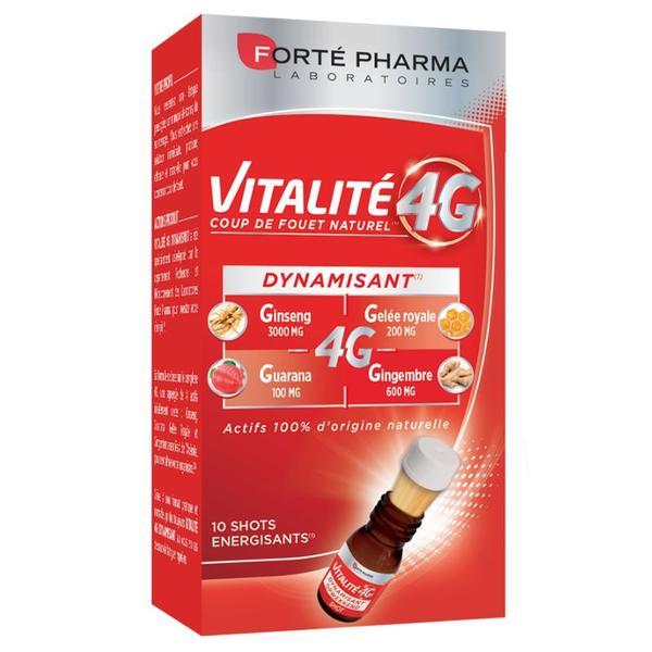 SHORT LIFE - Supliment pentru Energie Vitalite 4G Forte Pharma, 10 buc: supliment alimentar pentru cresterea energiei si reducerea starilor de oboseala. Este un produs energizant, ce vine sub forma lichida, ce are la baza ginseng, laptisor de matca, guarana si ghimbir. Reduce oboseala mentala, durerile de cap si imbunatateste performanta fizica, accelereaza metabolismul si sprijina capacitatea de concentrare si memorare. Este preferat de sportivii de performanta deoarece grabeste recuperarea fizica si ajuta la fortificarea sistemului imunitar. Are un efect rapid, ingrediente naturale si nu contine zahar sau coloranti.