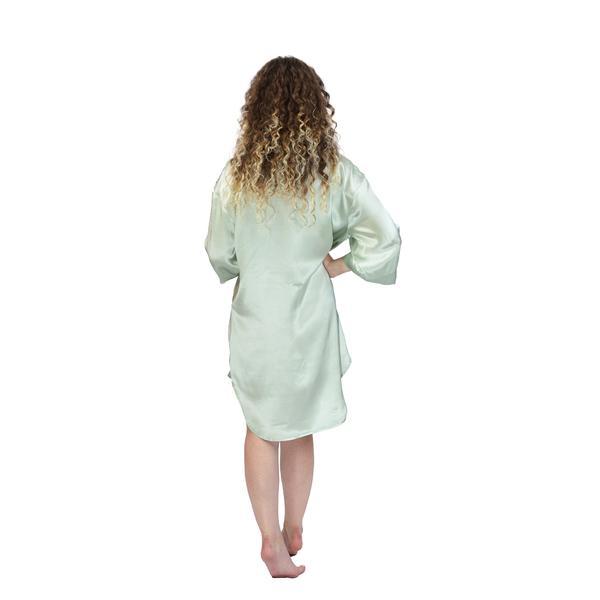 Cămașă de noapte din mătase naturală cu guler supradimensionat de culoare fistic. Produsul este însoțit de certificat de calitate și conformitate.