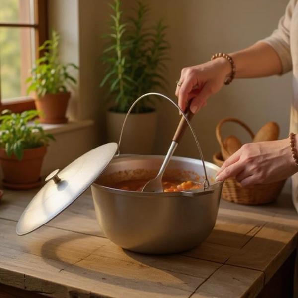 Versatilitate in bucatarie: Ideal pentru prajit, fiert sau calit produse non-acide, fara a afecta gustul, culoarea sau mirosul mancarii.