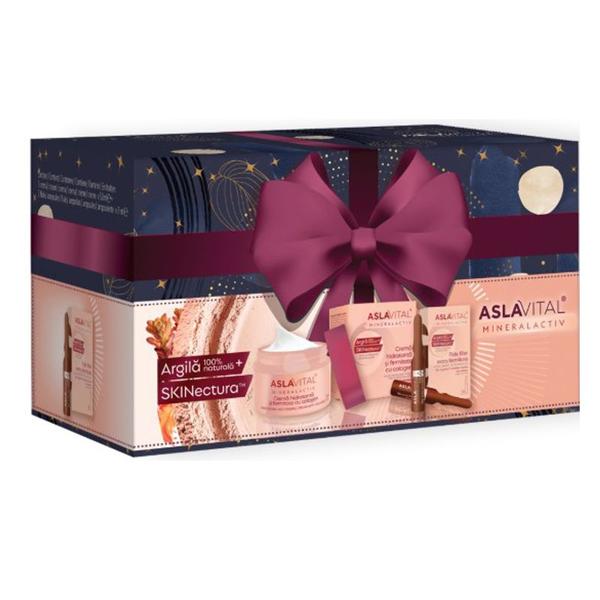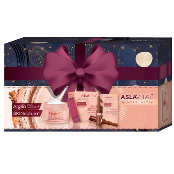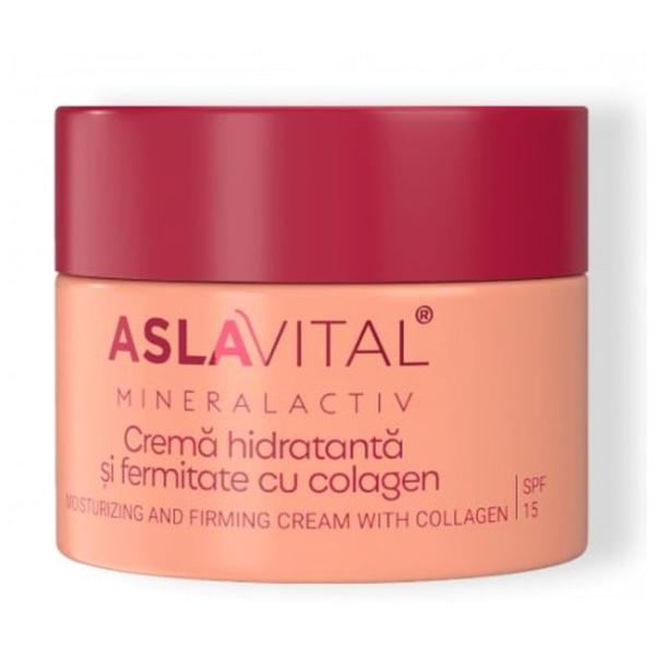 Setul Cadou Femei Aslavital Mineralactiv: Crema Hidratanta si Fermitate cu Colagen SPF 15, 50 ml + Fiola cu Colagen si Elastina, 2 fiole x 2 ml