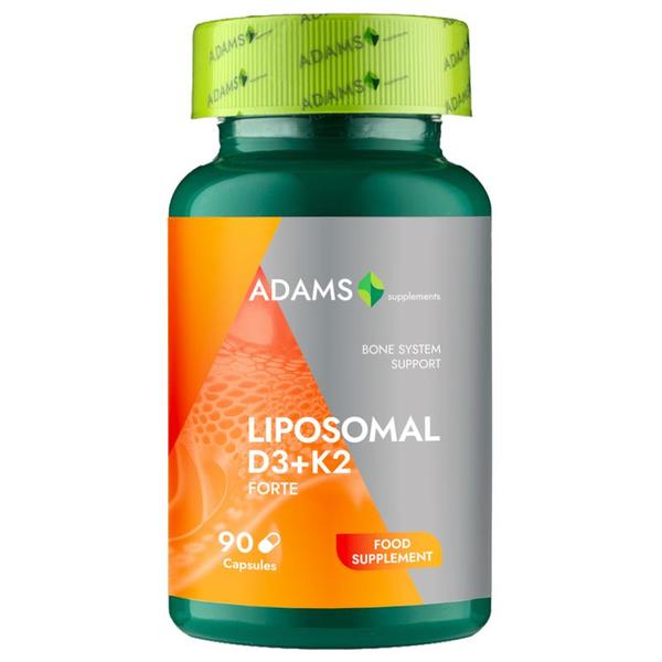 Liposomal D3 + K2 Forte - Adams Supplements Bone System Support, 90 capsule: vitamina D3 100 mcg / 4000 UI si vitamina K2 500 mcg sustin imunitatea, sanatatea oaselor si contribuie la utilizarea corecta a calciului si a in organism. Tehnologia lipozomala protejeaza ingredientele active pentru a spori rata de absorbtie si eficienta. Sprijina mentinerea sanatatii oaselor si a dintilor si contribuie la functionarea normala a sistemului muscular. Vitamina K2 sustine sanatatea sistemului osos si coagularea normala a sangelui. Supliment alimentar recomandat sportivilor sau persoanelor active care solicita sistemul muscular, persoanele cu expunere redusa la soare, pentru mentinerea sanatatii oaselor (varstnici, femei, persoane sedentare).
