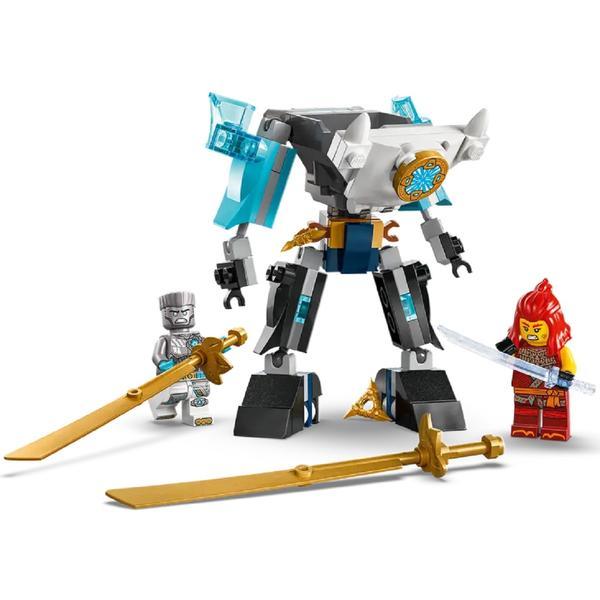 Setul pentru joaca fantezista Lego Ninjago Costumul robot de lupta al lui Zane permite copiilor de 6 ani si mai mari sa interpreteze scene captivante din sezonul 3 al serialului TV Ninjago Dragons Rising. Acest set de constructie pentru copii include un robot Ninjago cu brate, picioare si maini articulate, trunchi care se roteste la 360 de grade, piept care se deschide pentru a plasa o minifigurina inauntru si 2 accesorii sabii mari.
