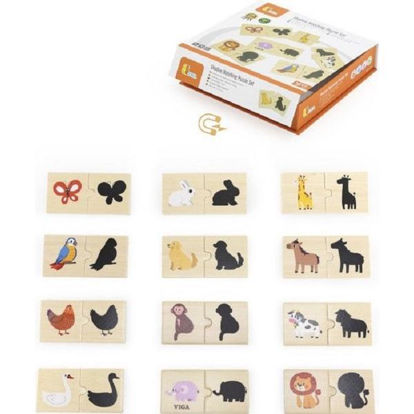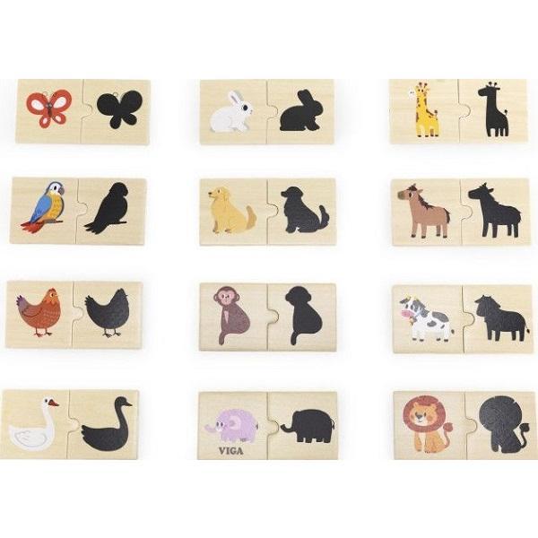 Set puzzle lemn: Potriveste umbra: Joc educativ cu animale, potrivire și învățare prin joacă! Ajută cele 12 animale să-și găsească umbrele potrivite!