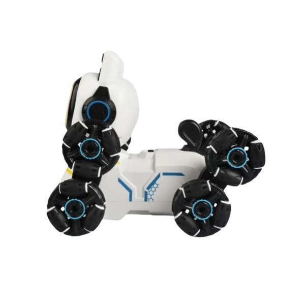 Controlat prin telecomandă 2.4GHz, robotul poate efectua multiple mișcări acrobatice, mers în toate direcțiile, dans, lumini LED și efecte sonore.