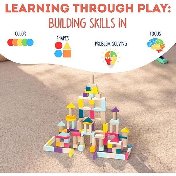 Kit 50 piese constructie din lemn: Jucăriile din lemn au fost întotdeauna interesante și sigure pentru copii, contribuind semnificativ la dezvoltarea deprinderilor motorii și a percepției senzoriale a copilului tău.