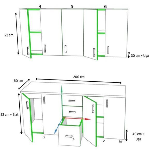 • Dimensiuni bucătărie: 200 cm lungime